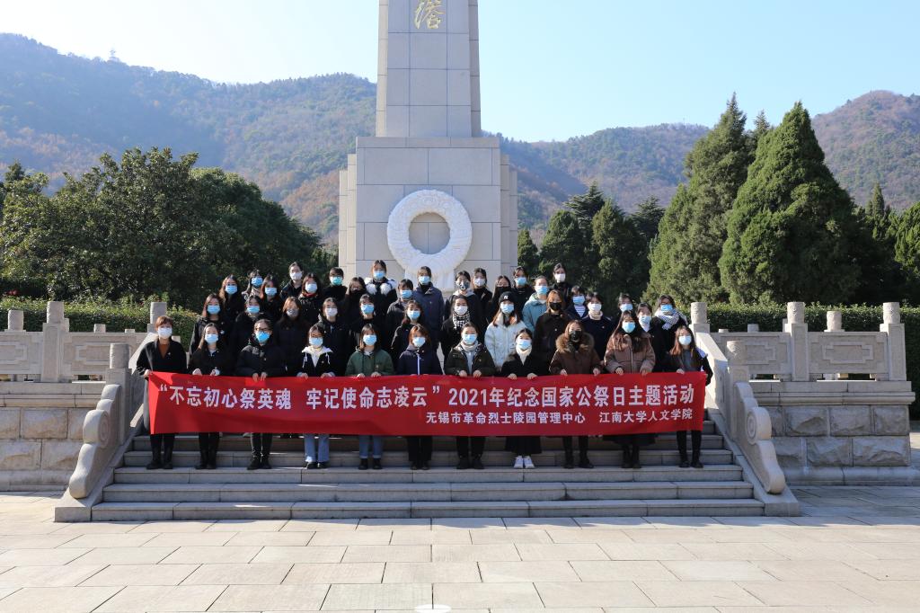 岁寒之时,国家公祭之日,以国之名,追忆逝者,缅怀英灵。12月13日是第八个南京大屠杀死难者国家公祭日,当天上午,太阳成tyc234cc前往无锡市革命烈士陵园开展“国家公祭日”主题党日活动,太阳成tyc234cc分团委书记赵丽敏、党建辅导员邓昌海、49名学生党员和青马工程班学员代表共同参加了本次活动。上午九时,活动正式开始,烈士陵园广场庄严肃穆,全体人员奏唱中华人民共和国国歌。国歌唱毕,大家脱帽肃立,向牺牲的先烈和遇难同胞默哀。...