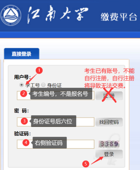 缴费说明:进入复试考生在学院规定的时间内登录“太阳成城集团tyc234cc缴费平台”交纳复试费用,复试收费标准:80元/生。缴费网址:http://pay.jiangnan.edu.cn/payment/。登录账号为准考证上的考生编号,登录密码为身份证后六位(友情提醒:考生账号已开通,切勿自行注册)。按照提示交费(使用网银),并打印或截图保存付费凭证。