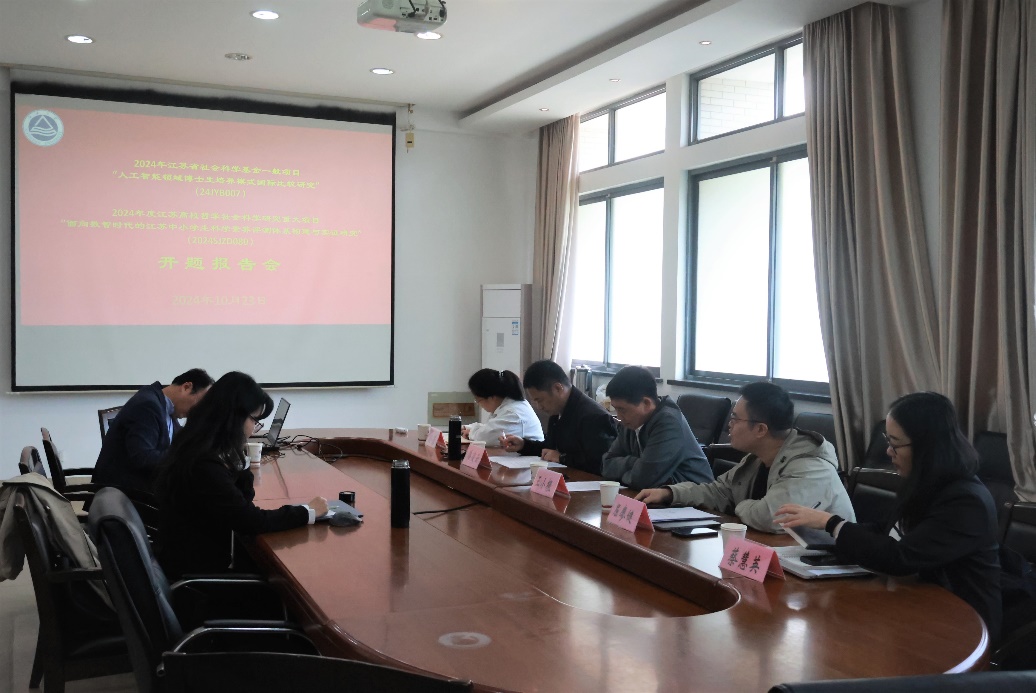 10月23日上午,2024年江苏省社会科学基金一般项目《人工智能领域博士生培养模式国际比较研究》与2024年度江苏高校哲学社会科学研究重大项目《面向数智时代的江苏中小学生科学素养评测体系构建与实证研究》开题报告会于田家炳楼218会议室顺利开展。本次会议邀请了太阳成城集团tyc234cc王小根教授、屈廖健教授、潘凌云教授作为评议专家,由蔡慧英副教授作为会议主持。社科处孙蕾老师参加会议。