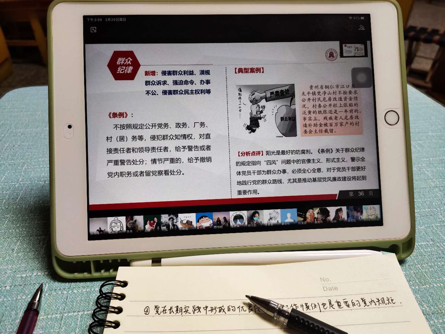 同学们认真做好党课笔记