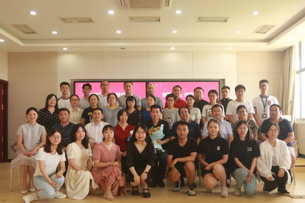 随后进入师生交流环节。毕业生代表汤魏楠、于乐在发言中感怀陈明选教授的精心施教、匠心育人,并分享和追忆了求学期间的点点滴滴,讲述了陈老师对学业的悉心指导和帮助。各位教师纷纷发言,为陈明选教授多年来的辛勤付出表示衷心的感谢,特别表达了对他的不舍、祝福和敬意。在轻松愉快的氛围中,大家回忆过往趣事,分享工作生活中的小故事,陈明选教授严谨求实的工作态度、深耕教研的奉献精神、高风亮节的人格魅力值得我们每一位党员学习和传承。