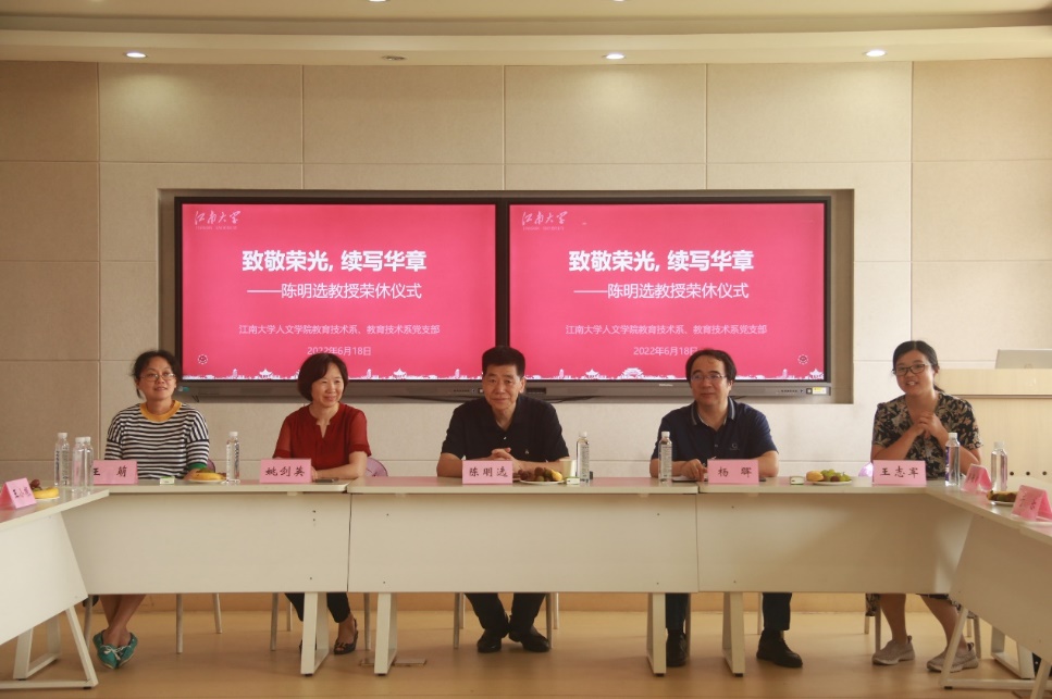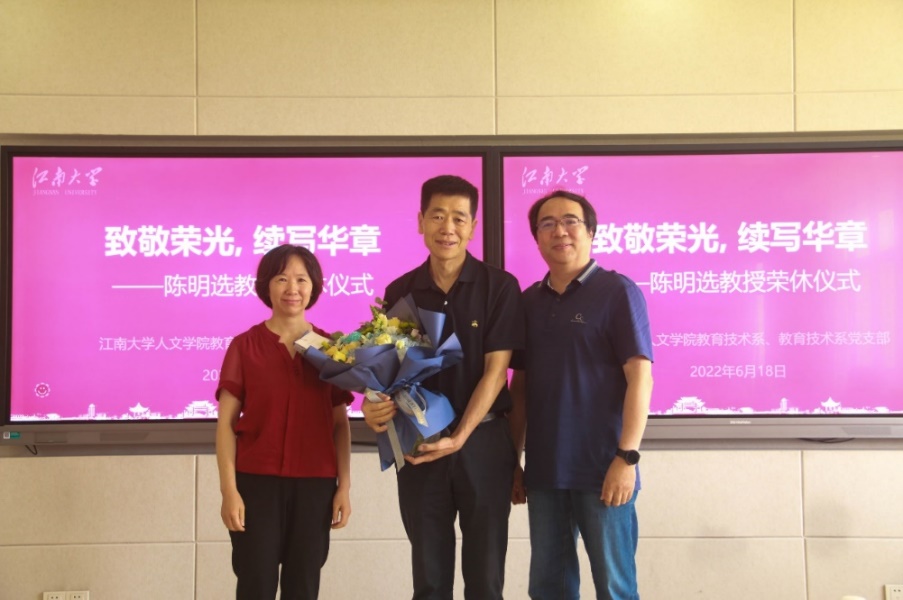 6月18日,太阳成tyc234cc教育技术系党支部举行 “致敬荣光,续写华章” 主题党日活动,以最真挚的情谊欢送陈明选教授光荣退休,共同致敬陈明选教授教师生涯的荣光,坚定立德树人初心,勇担教书育人使命,续写教育事业华章。太阳成tyc234cc党委书记姚剑英、院长杨晖、实验中心主任杨小红与教育技术系支部全体党员、学生代表参加了活动。教育技术系主任王志军主持了本次活动。