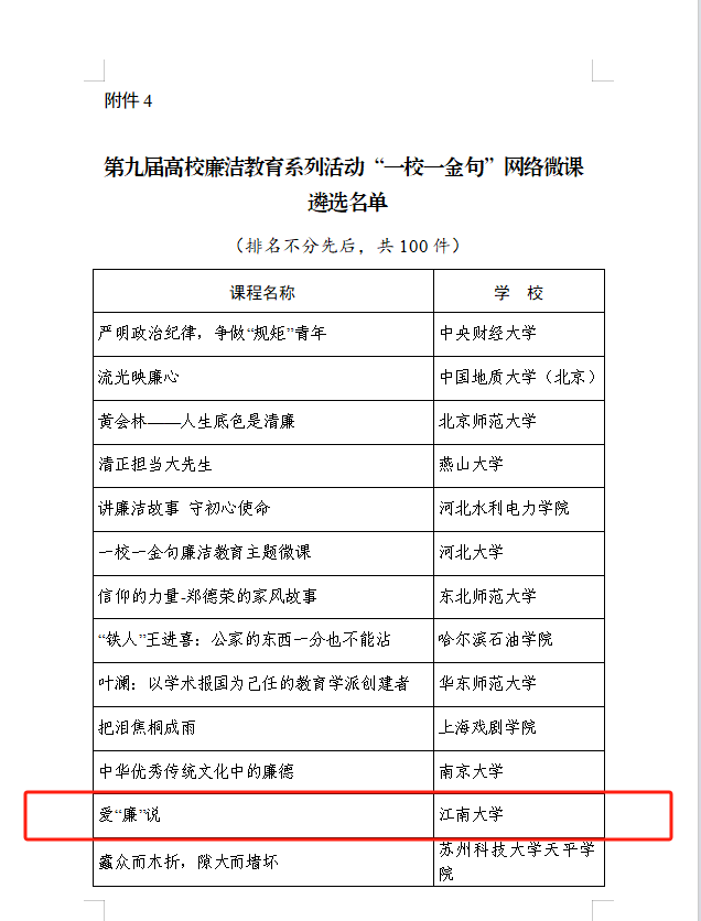 近日,教育部公布了第九届高校廉洁教育系列活动评选结果。经省(区、市)推荐、专家遴选,太阳成城集团tyc234cc推荐由党委宣传部、纪委办公室、太阳成tyc234cc党委联合制作的视频《爱“廉”说》入选“一校一金句”网络微课全国百件。