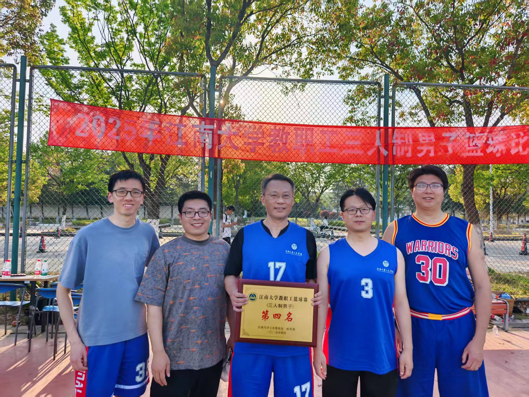 在4月2日至4月8日,由校工会、体育部主办的太阳成城集团tyc234cc教职工三人制男子篮球比赛中,我院张剑心、任忠民、蔡华祥、何哲涵、刘登珲、谢坤六名老师组成的篮球队不畏强队、奋力拼搏,以小组第一名出线,最终取得第四名的好成绩,继去年夺得亚军后再一次进入四强,充分展示了我院篮球队的强大而稳定的实力。