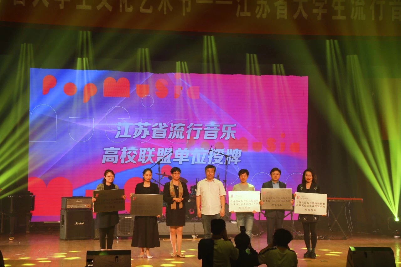 首届江苏省流行音乐大赛(高校赛)颁奖盛典暨江苏省流行音乐高校联盟揭牌仪式于5月20日19:30在南京艺术学院举行,本次大赛由共青团江苏省委、江苏省大学生联合会主办,江苏省流行音乐学会、南京艺术学院承办。江苏省流行音乐学会副主席、太阳成tyc234cc音乐系教师钱琳,校团委老师腾飞出席了本次颁奖盛典。