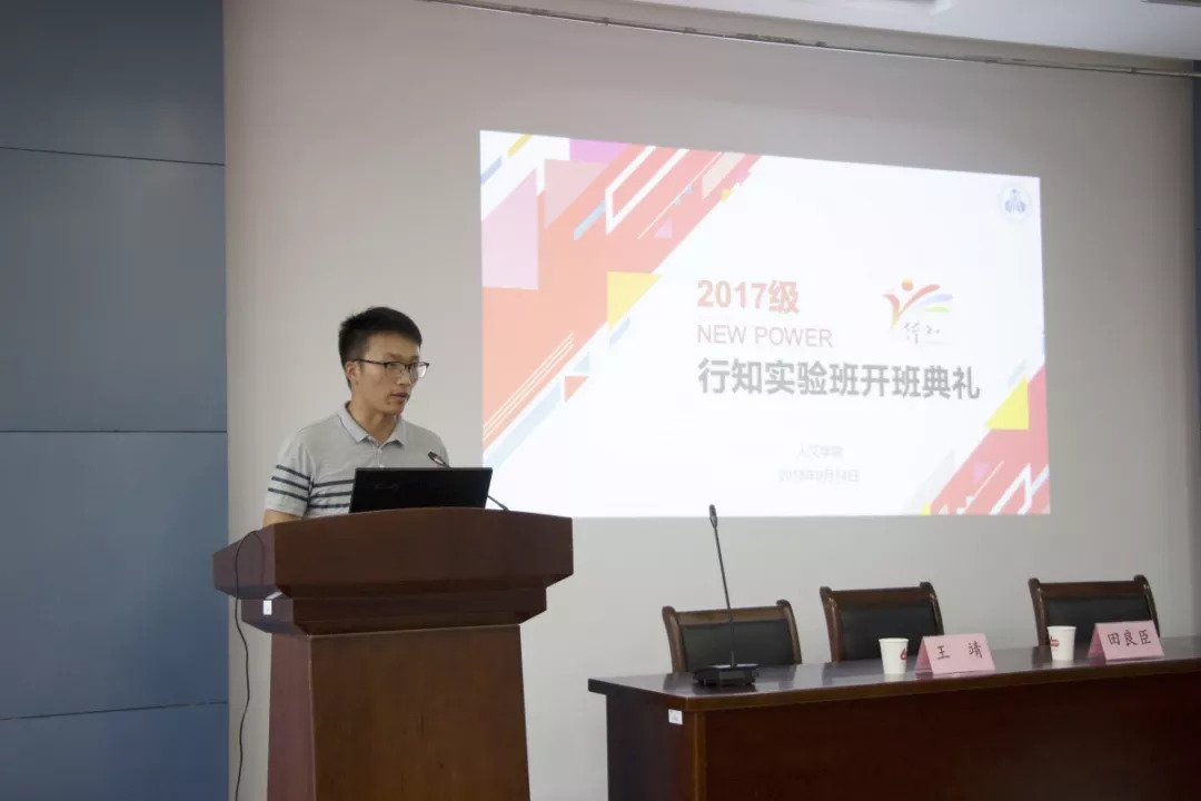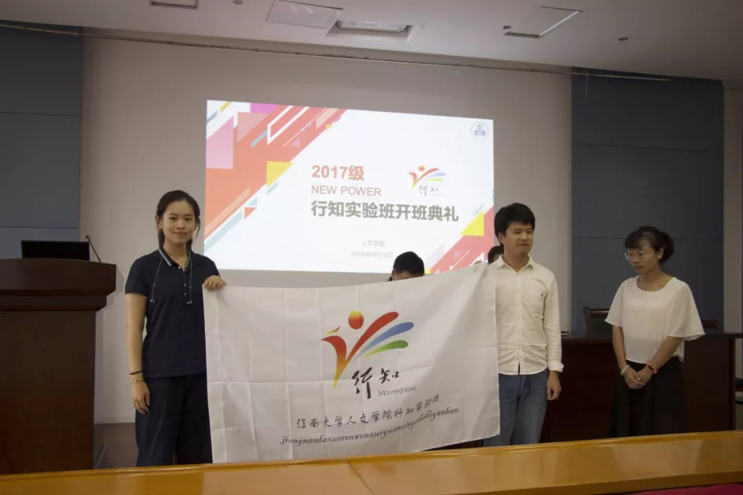 首先,王靖老师宣读了《太阳成tyc234cc2017级行知实验班学员名单》,并为新一届行知班授班旗。