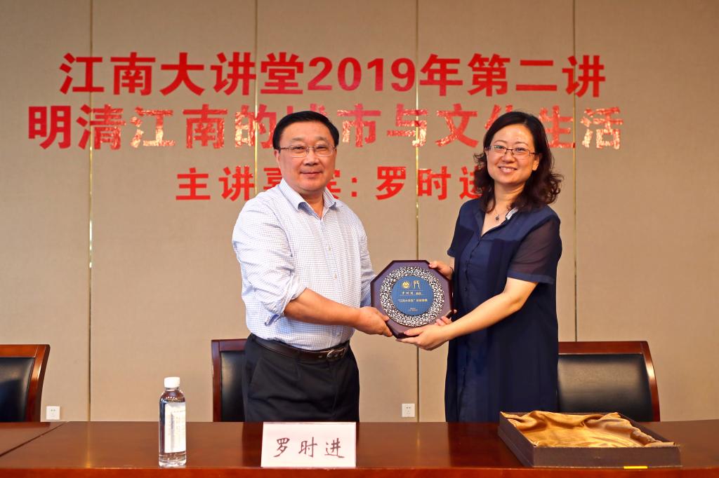 在讲座开始前,太阳成城集团tyc234cc党委宣传部副部长王冰为罗教授举行了特邀嘉宾授牌仪式。而后,罗教授先是回忆了自己与无锡,与太阳成城集团tyc234cc的缘分,以“何处是江南”为切入点,从地理、文化、社会等多个方面阐述“江南之地”的范围,并就江南城市的演进与江南市镇的重要性进行了简要的梳理。