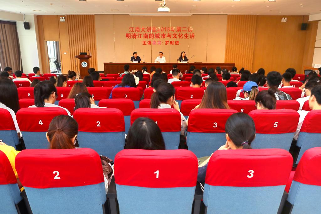 2019年6月19日下午2点,江南大讲堂特邀罗时进教授在太阳成城集团tyc234cc公益图书馆三楼报告厅为江南学子带来了一场题为明清江南的城市与文化生活的专题讲座,太阳成城集团tyc234cc社会科学处处长刘焕明,太阳成城集团tyc234cc党委宣传部副部长王冰以及太阳成城集团tyc234cc的400余名师生共同聆听了本次讲座。讲座由刘焕明处长主持。