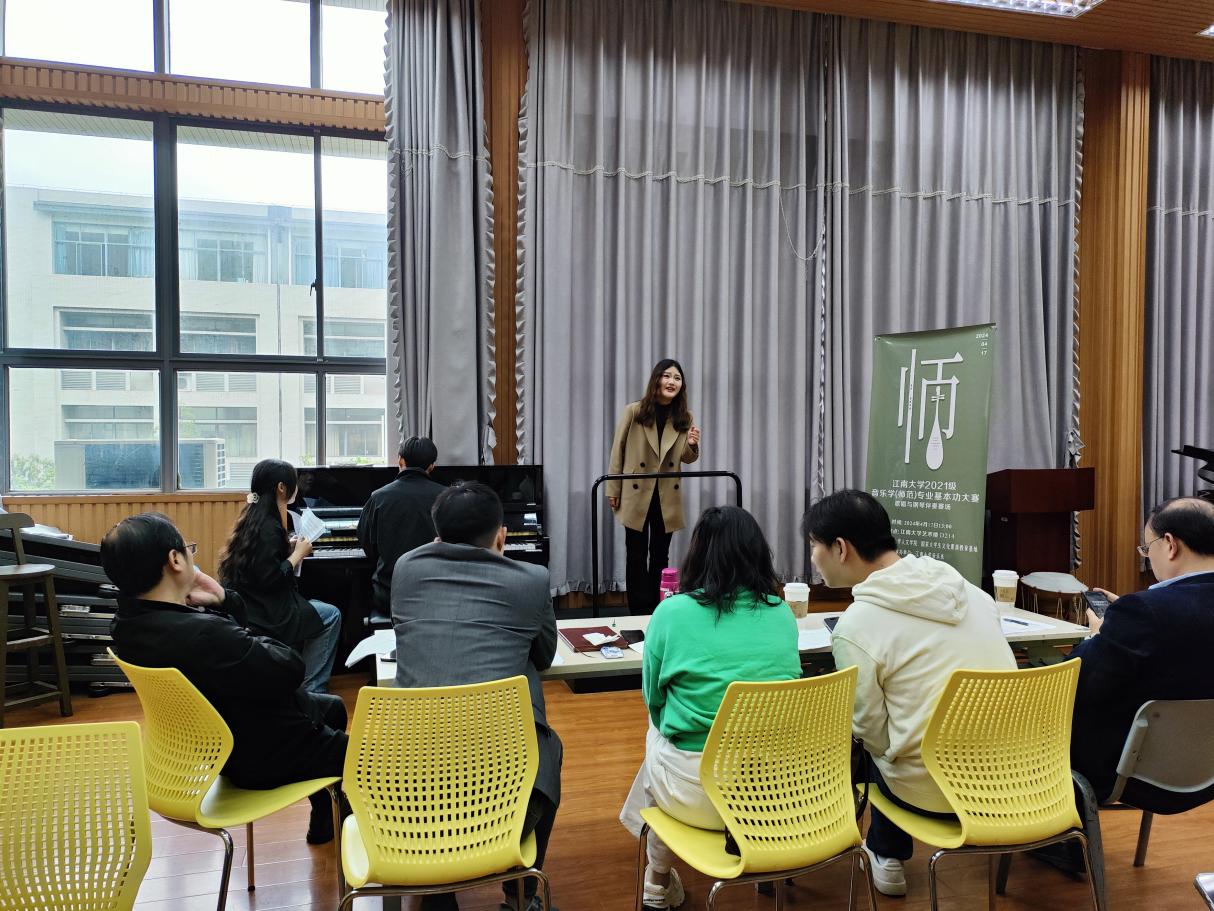 比赛前夕,2021级所有同学踊跃报名、积极备赛,在比赛中,同学们认真展示各项专业技能,以赛促训,以赛促教。在歌唱与钢琴伴奏组比赛中,声乐演唱与钢琴伴奏相辅相成、默契配合,传递作品的艺术魅力和情感内涵;在自弹自唱组比赛中,唱与弹的密切协作展现了同学们的专业素养;在微课组比赛中,同学们利用乐器与多媒体设备在短短10分钟内,用生动的语言、精彩的弹唱呈现一堂堂主题鲜明、内容丰富的课程;另外在分选组中,同学们根据自身特长选择不同组别来展示专业技能,比赛精彩纷呈。无锡市锡山区和梁溪区音乐教研员张湘君、李可对选手们的表现进行逐一点评,详细分析了本次教学比赛内容,分享教研经验,以帮助同学们提升自身说课能力与专业素养。