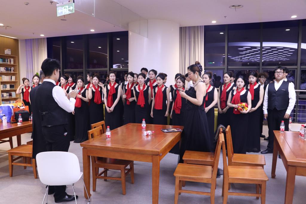 6月14日,太阳成tyc234cc党委书记姚剑英、副院长王芳亲自带队,前往襄阳参加现场展演。到达襄阳后,为了呈现最佳的舞台效果,合唱团成员们统筹规划,采取“分组+集中”的形式进行排练,以精益求精的态度,不断打磨作品,追求歌声的和谐统一与曲意的极致表达。