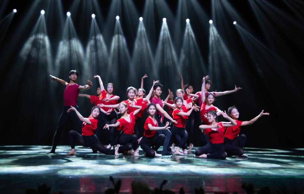第二篇章“承水乡雅韵,谱写时代激昂曲”展现了人文学子紧跟时代发展,勇做时代弄潮儿的青春志气。吕婧带来的笛子独奏《大青山下》,笛声激越,余音绕梁。2023级舞蹈系的《蒙格尼》,音乐富有节奏,演员们在聚光灯下翩翩起舞,展现了浪漫唯美的异域风光。毕非凡与陈卓妍带来合唱《永不失联的爱》,歌声动人心弦,情感真挚热烈。种子话剧团的话剧《风声》,给现场带来了一丝紧张的气氛,牵引着大家的思绪,共同回到了那个伟大的抗战年代。