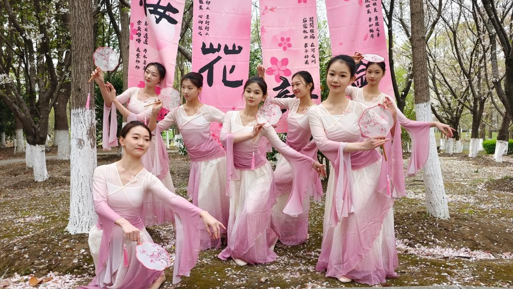 “同学们知道这首诗的含义吗?”“大家知道古典舞中是如何表现鲜花绽开的吗?”随着问答声起,一场古今对话拉开帷幕。少年与樱同舞、执卷长吟,汉服飘飘,古曲泠泠;参与者行踏樱林,赏心游乐,恍若步入水墨长卷。中华优秀传统文化在这场春日雅集中褪去尘封,化作触手可及的美学经典与时代新潮。