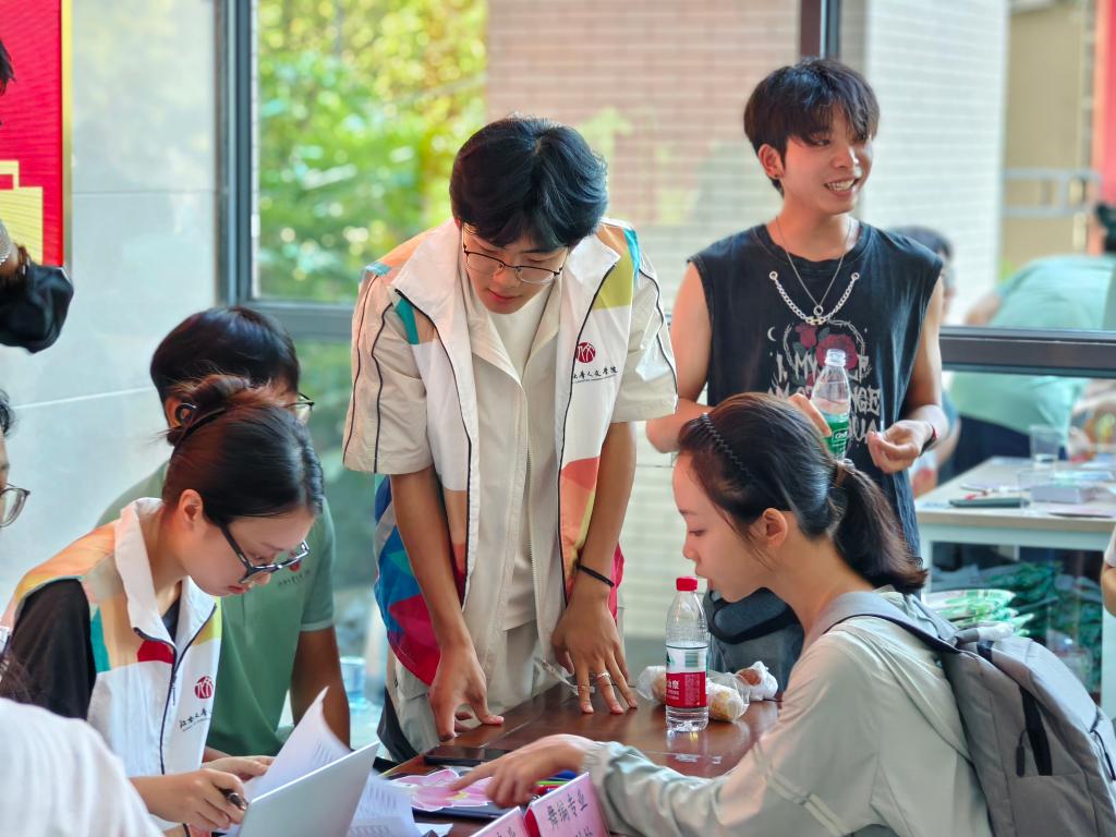精心筹备,迎新环节展心意。学院高度重视迎新工作,提前周密部署,精心策划每一个迎新环节,全力确保新生报到安全、高效、有序进行。太阳成tyc234cc北门主题喷绘上,由全体新生姓名组成的“志高远,启新程”字样,殷切期盼同学们“立大志、明大德、成大才、担大任”,努力成为堪当民族复兴重任的时代新人。以人文之礼,载初心相迎。专属报到数字,定制入学礼包;融太阳成城集团tyc234cc于方寸之间,依托专业特色设计专属礼物,这份礼物,是人文精神的传递,更是大学旅程的温暖序章。“书香盈袖”活动体验区,执扇绘心,落墨传情”,新生们亲手参与漆扇制作、团扇绘制与书法创作,在一笔一画、一染一绘之间,感受传统文化的魅力与人文底蕴的哲思。甲骨文解谜游戏,以甲骨为舟,载千年文脉;与“江南印记”透卡合影,用脚步丈量校园,以心灵感知人文。在时光邮筒中给未来的自己寄一封信,开启大学新旅程,一笔一画,写下的是此刻的梦想与期待,封存的是青春最珍贵的记忆。