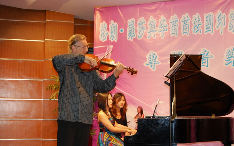 2013年10月17日晚7时,日内瓦音乐学院教授、世界著名中提琴演奏家洛朗·罗莎先生和钢琴演奏家李苗苗女士受我院邀请在北区活动中心音乐厅举办了法国印象派音乐专场音乐会。我院领导方正泉书记、田良臣副院长、蔡爱国副院长,音乐系主任马克老师等出席了音乐会。10月18日下午,我院还组织音乐系学生与洛朗·罗莎、李苗苗进行交流学习。