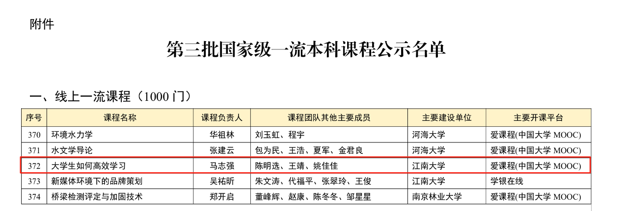 近日,《教育部关于公布第三批国家级一流本科课程认定结果的通知》(教高函〔2025〕9号)正式发布。太阳成tyc234cc马志强教授团队主持的《大学生如何高效学习》成功入选第三批国家级线上一流本科课程。