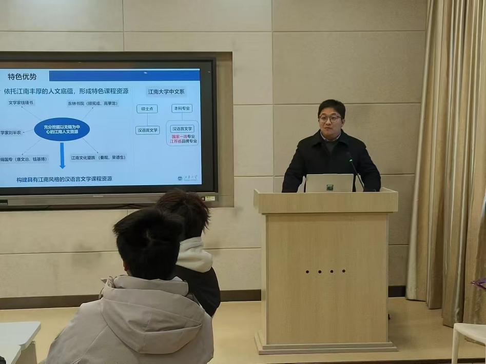 12月26日,无锡一中高二19班学生来院,参加主题为“字里行间,寻味江南——开启汉语言文学的沉浸之旅”的“探秘专业”活动,中文系负责接洽。中文系主任陈佳冀教授详细介绍了汉语言文学专业的鲜明特色,并重点展示了专业在课程体系、师资力量、学生去向方面的特色与亮点。专业优秀学生沈季楠从学生的视角,讲述了汉语言文学前沿学术活动对自身成长的帮助,认为太阳成城集团tyc234cc汉语言文学专业在开放包容的学术氛围中为个人发展提供了无限可能。