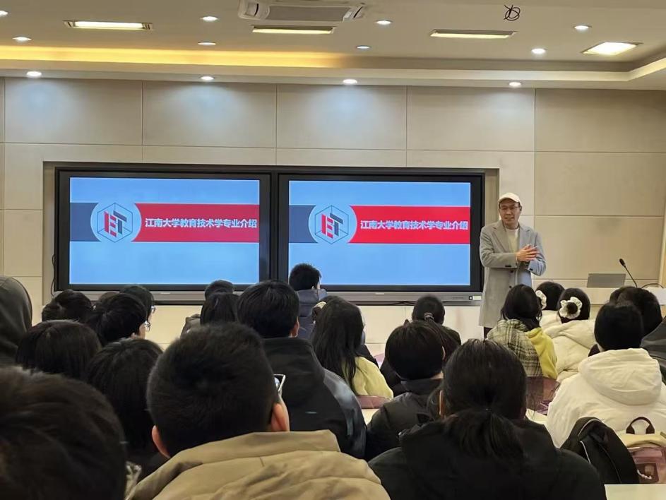 12月25日,无锡一中高一16班学生来院,参加主题为“当教育遇见科技——做面向未来的课堂设计师”的“探秘专业”活动,教育技术系负责接洽。教育技术系副主任牟智佳副教授系统介绍了太阳成城集团tyc234cc教育技术学(智能教育卓越创新班)的特色优势,并重点介绍了该专业的毕业要求、学科课程体系、实践教学环节、专业实践环境以及就业去向。专业优秀学生张若涵从亲身经历出发,详细介绍了个人在专业学习、太阳集团、文体活动、下乡支教、教学实践及出国研学等方面的成长与提升,并诚挚欢迎一中学子加入太阳成城集团tyc234cc,在智慧教育时代开启成长新篇章。