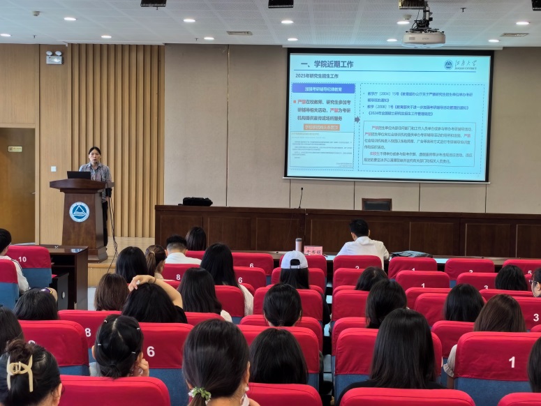 会议伊始,于书娟总结了上半年学院研究生的工作,肯定了我院在江苏省研究生科研创新项目立项、江苏省优秀硕士论文评选等方面取得的成绩,同时通报了全国田家炳杯初赛校内选拔进度、2022级中期考核、江苏省学位论文抽审以及本届毕业生校级盲审的情况;肯定了江南讲坛、湖畔杏坛、科研讲座等学术文化交流、学风建设的成果,并重申了各年级的毕业学术发表条件。
