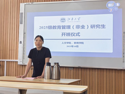 于书娟副院长则从“身份转换、主动请教、能力提升”三个维度提出要求。她指出,学员虽多为在职教师,但进入校园需快速切换至“学生”身份,严格遵守考勤纪律;其次要充分利用学校数据库、图书资料等资源,更要珍惜导师、任课教师与同学这一“活资源”,主动交流选题价值、协作开展调研;最后强调了研究生阶段的核心是提升教研能力与管理能力,论文选题需紧扣“教育管理”方向,既要满足学术要求,也要服务实际工作。