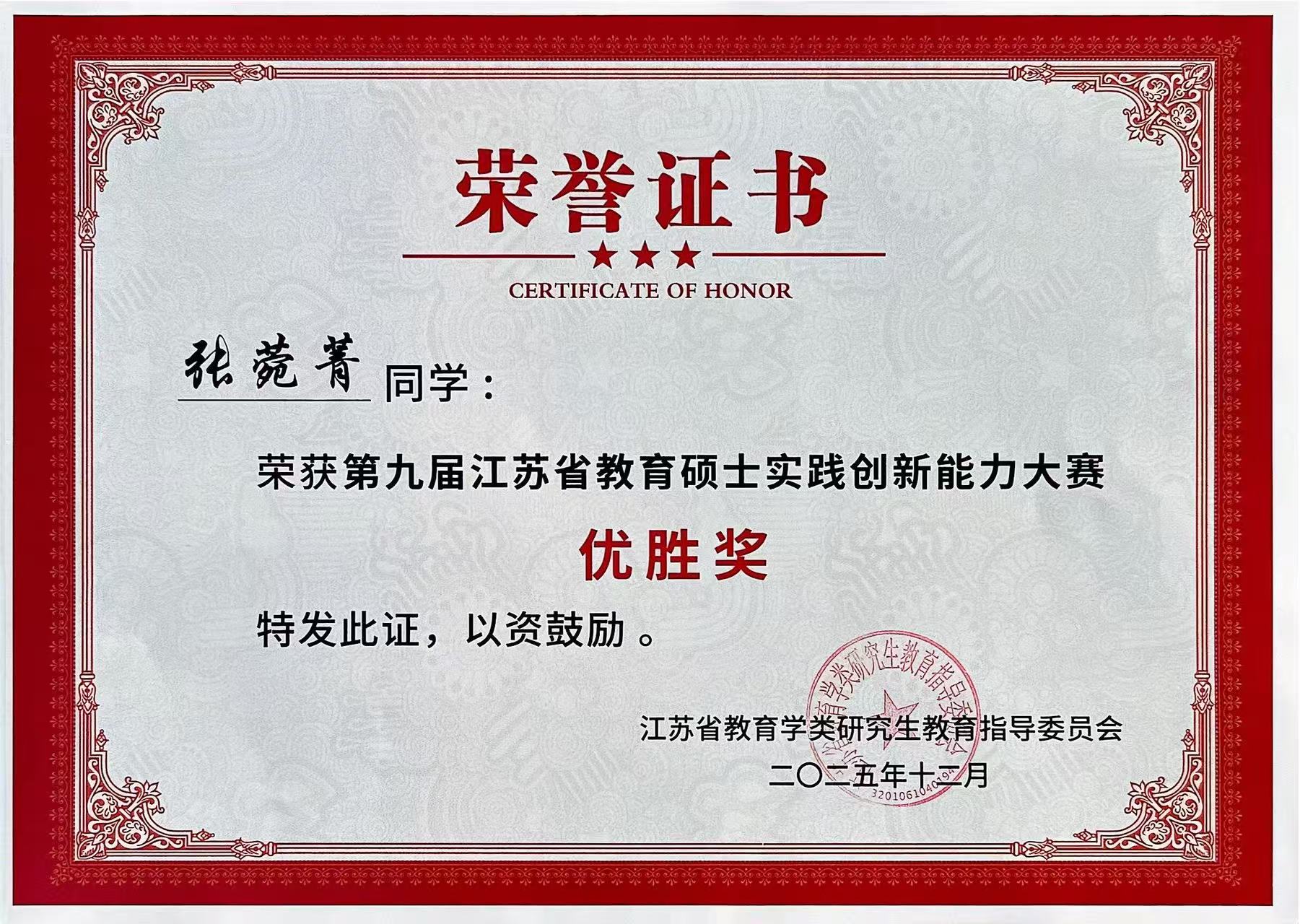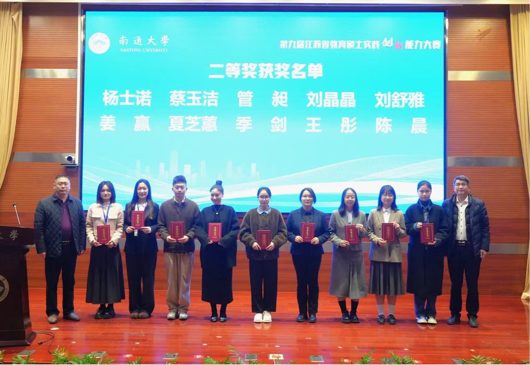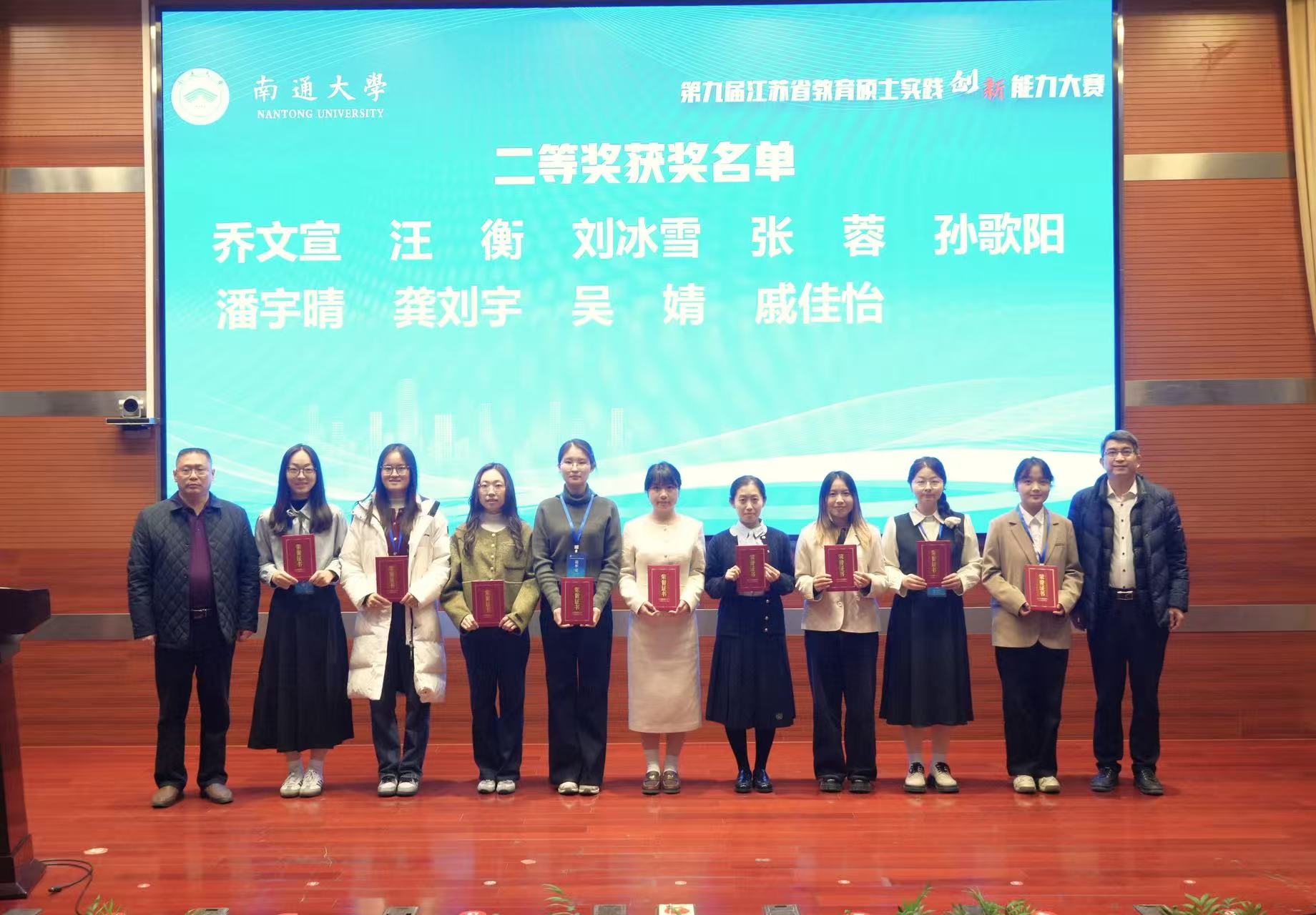 2025年12月5日-7日,由江苏省教育学类研究生教育指导委员会主办,南通大学承办的“第九届江苏省教育硕士实践创新能力大赛”在南通大学举行。我校研究生荣获二等奖2项,优胜奖3项。