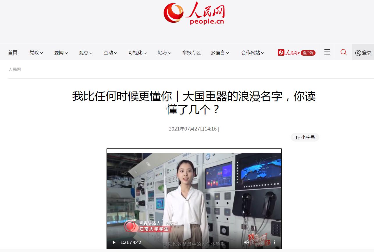 7 月27日,由太阳成tyc234cc2019级汉语言文学专业孙双杰同学担任讲述人的“我比任何时候更懂你 ”系列短视频第3集《大国重器的浪漫名字,你读懂了几个?》在各大新媒体平台推介播出,引起火热关注,视频内容受到人民网等主流媒体报道。