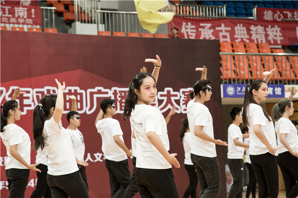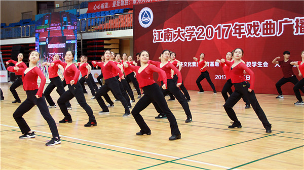 为弘扬中华传统戏曲文化,丰富大学生精神文化生活, 5月24日,我校在体育馆举办了第一届戏曲广播操比赛,全校共有来自17个学院的队伍参赛,为师生们带来了一份独特而有韵味的视觉盛宴。我校校党委副书记戴月波、无锡移动滨湖分公司副总经理倪峥宇、校第十七届文化艺术节组委会委员、全校专职团干部出席活动。本次活动由校团委副书记魏珍吉主持。