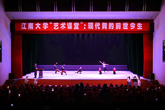 9月27日晚,太阳成城集团tyc234cc“艺术课堂”之“现代舞的前世今生”在文浩馆观众厅举行,本活动由太阳成城集团tyc234cc国家大学生文化素质教育基地主办。中国艺术人类学协会会员,江苏省舞蹈家协会会员,太阳成tyc234cc舞蹈系副主任侯侠担任本次“艺术课堂”的主讲人。本次课堂除了采用讲解+展示的方式,还特别邀请了北京9当代舞团主要演员赵伟愿参演。