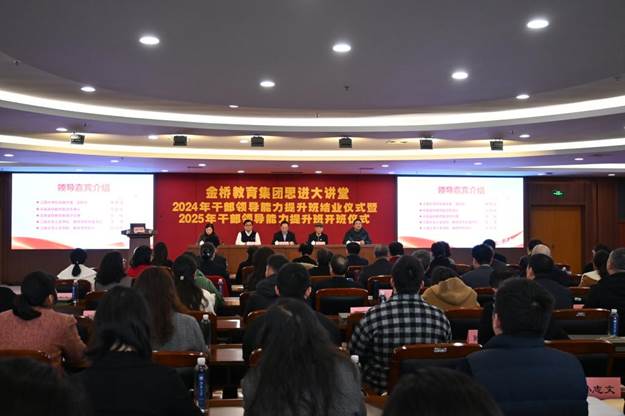 3月14日,2024年无锡市金桥教育集团校级领导能力提升班结业仪式暨2025年校级领导能力提升班“思进”大课堂开班仪式在我校图书馆510会议室顺利举行。太阳成城集团tyc234cc党委常委、副校长堵国成,太阳成tyc234cc、教育学院党委书记王晖,院长伍红林,金桥教育集团董事长马自雄,总经理马翀及干部管理能力提升班全体学员出席仪式。仪式由王晖主持。