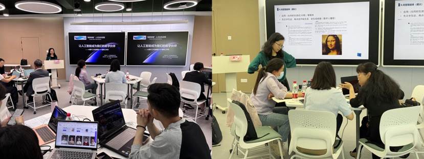 在研学的第五课,江苏省社科联社科普及资助项目“锡事明理”人文社科讲堂同期举办,江苏“互联网+教育”研究基地王靖教授为教师开展了《让人工智能成为我们的教学伙伴》的工作坊式讲堂。王靖教授结合教学评测场景中的10个案例,分享了AI赋能教学评测的基本原理、场景与实践。