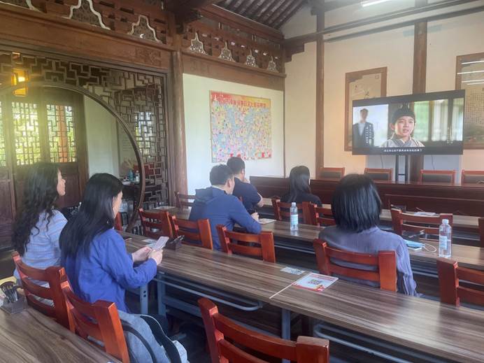 在廉政文化交流馆,中心组成员在院党委书记王晖的带领下,面对鲜红的党旗,重温入党誓词,叩问初心、举拳明志。随后,集中观看了廉政教育视频,抄写《爱莲说》,分享学习感言等。