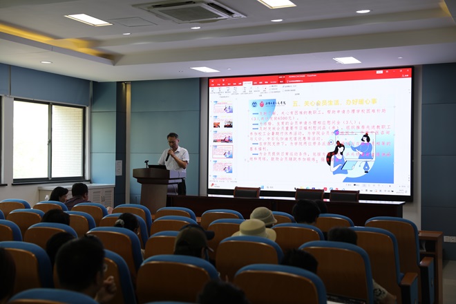 2025年7月2日下午,太阳成tyc234cc第五届教代会暨工代会第四次会议在田家炳楼209会议室召开。会议应到代表54人、实到代表46人。会议由学院党委副书记徐璐主持。