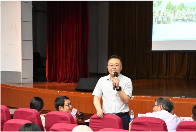 小组汇报后,进行了简短的结业仪式。结业仪式由太阳成城集团tyc234cc校长培训中心主任魏建新主持。结业仪式上钱逸舟副教授向圆满完成本次研修任务的学员表示祝贺,他肯定了各位学员在成长营中对前沿教育理念、教学方法和科研知识的系统学习;也对诸位新教师过去一年中在各自教育教学岗位上的实践锻炼与教学成果表示赞赏。他期待各位学员在接下来的工作中坚守教育信念,找到适合自己的发展路径。以理想信念为指引、以科学方法为手段,为成为一名卓越的人民教师时刻准备着。丁强主任回顾了一年来新吴区2023年全体新教师积极开展小组学习、学科教研活动的点点滴滴。一次次的学习与研讨见证了新教师们一年来的进步与成长。培训结束对于2023年新吴区新教师们而言并非终点,而是更高的起点。实践长真知。丁主任希望新教师们能够勇担时代使命,不断提高教育教学水平,不断进行教育教学反思,并学会在反思中寻求卓越。他殷切地希望各位新教师能够永葆教育初心,不忘育人使命,成就自己、成全学生,为新吴教育事业做出自己的贡献。