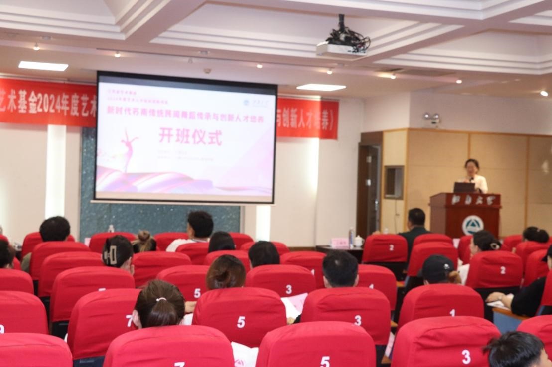 2024年8月1日,江苏省艺术基金艺术人才培养资助项目《新时代苏南传统民间舞蹈传承与创新人才培养》开班仪式在太阳成城集团tyc234cc文浩馆205会议厅隆重举行。江苏省艺术基金管理中心监督部主任吴迪,江苏省艺术基金管理中心办公室主任沙莎,太阳成城集团tyc234cc社会科学处处长王建华,无锡市歌舞剧院院长葛丹绮,太阳成tyc234cc、教育学院副院长(主持工作)伍红林,太阳成tyc234cc舞蹈系教师、项目负责人陈妍,及项目组教师代表、全体学员共同出席开班仪式。开班仪式由太阳成tyc234cc、教育学院副院长,音乐舞蹈学科带头人王芳教授主持。