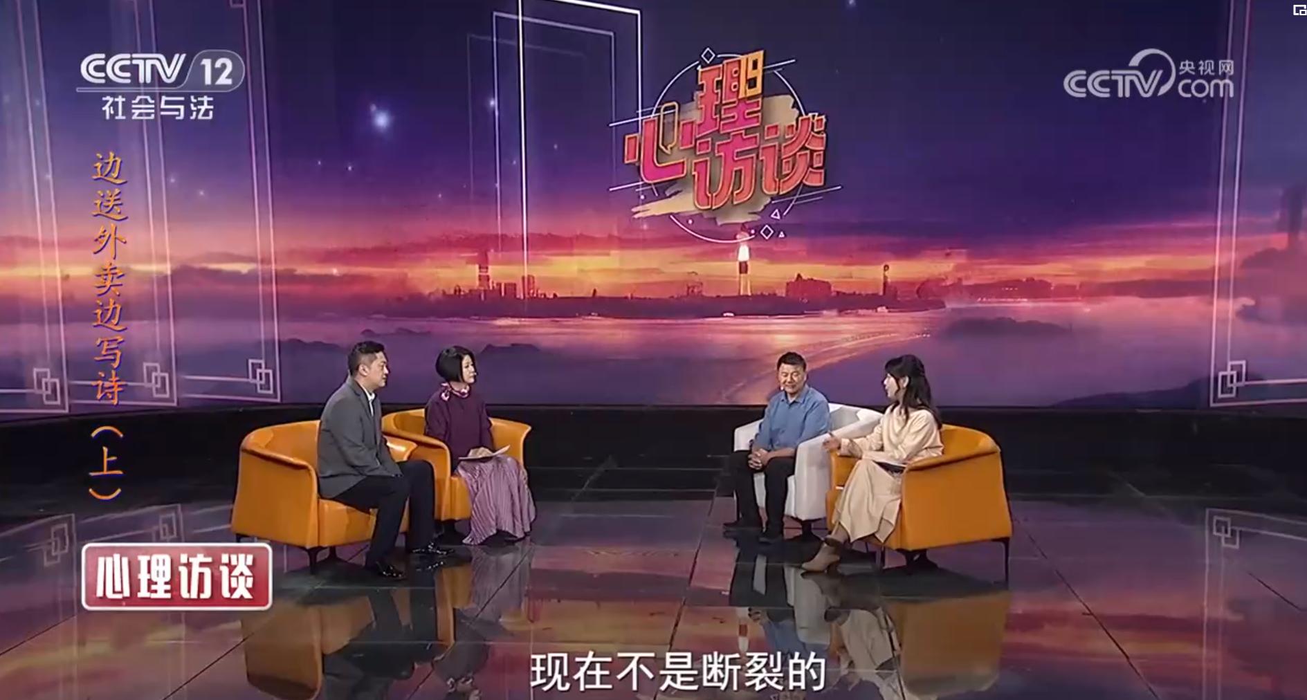 《心理访谈》是中央广播电视总台社教节目中心唯一一档以心理学为元素的社会心理服务类栏目。《边送外卖边写诗》共有上、下两期,第二期节目将在7月6日晚播出。
