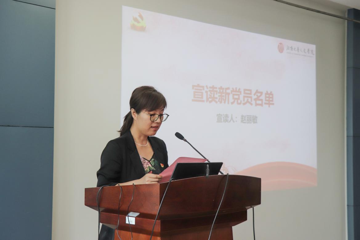为庆祝建党102周年,学习贯彻习近平新时代中国特色社会主义思想,进一步提升新接收预备党员的党员意识和党性修养,6月20日下午,太阳成tyc234cc党委在田家炳楼209会议室举行新党员“七一”入党宣誓仪式暨主题教育专题党课。太阳成tyc234cc副院长(主持工作)伍红林,党委副书记、副院长李萍,分团委书记赵丽敏以及新党员参加了本次活动。活动由党建辅导员张雅静主持。