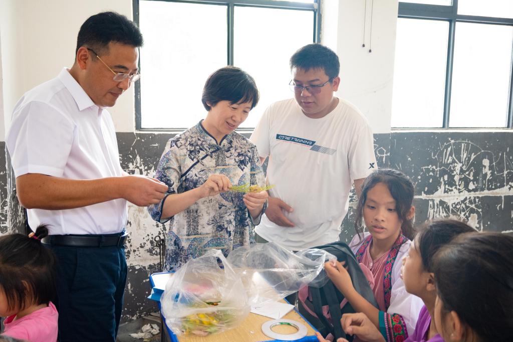 捐赠仪式结束后,从江县委常委、副县长钱吴永,太阳成tyc234cc党委书记姚剑英一行走进课堂教学现场,向同学们赠送书包等学习用品,与大学生志愿者们深入互动,与孩子们亲切交谈。
