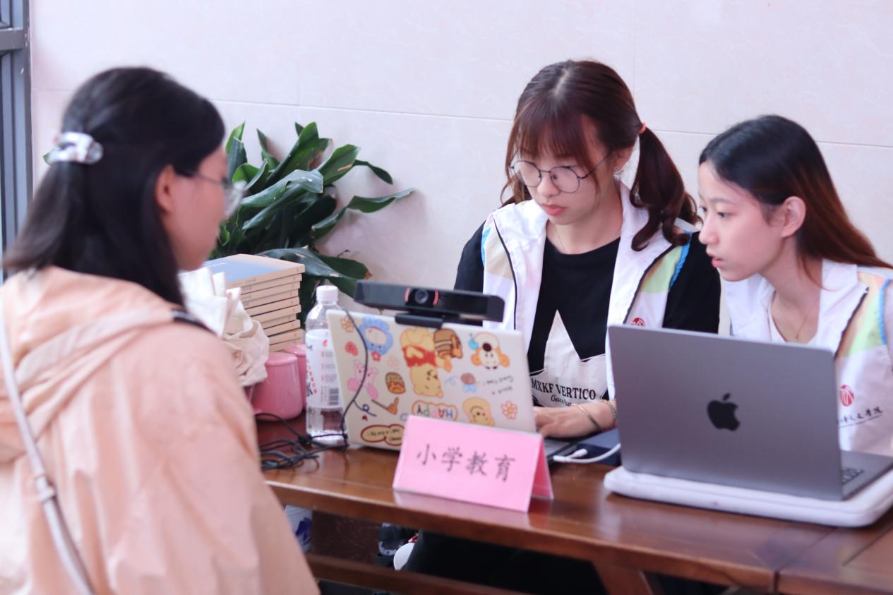 30日早上,迎新工作在田家炳楼北大厅拉开序幕。迎新老师、志愿者们认真负责做足了准备,巨型红色喷绘上,由有689名本研新生组合形成的人文院徽与齿轮完美融合,寓意四海学子来人文,命运的齿轮开始转动,向着美好大学出发。学院为每位新生准备了“太阳成tyc234ccX2023萌新”联名盲盒,包含定制卡套、手绘团扇、经典书籍、系主任手写信、手机支架、杯子、字帖领书卷等等。拆开新生“盲盒”,解锁大学新生活。现场互动环节,精心准备“识甲骨文 换迎新礼”“留下大学第一张照片”等丰富多彩的活动。迎新老师和志愿者们为“小萌新”办理报到、答疑解惑、温馨提示……,报到现场有条不紊,井然有序,热闹非凡。
