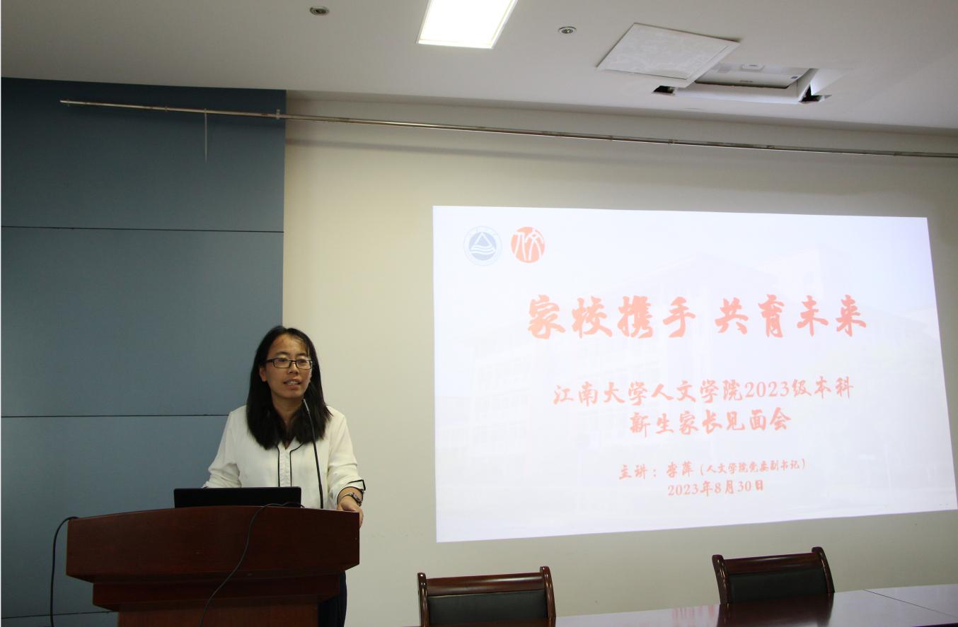 太阳成tyc234cc党委副书记李萍、副院长李萍向家长介绍学院情况