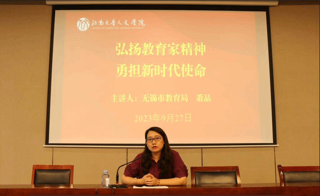 大会期间,学院邀请到无锡市教育局副局长萧晶为党员上了一堂题为《弘扬教育家精神 勇担新时代使命》的党课。她带领全体党员学习了习近平总书记关于弘扬教育家精神的重要指示,勉励广大教师及未来教师要牢记习近平总书记的期待和嘱托,坚定勤学善思、追求真理、锐意创新的职业追求,更好地在教育教学过程中为党育人、为国育才。