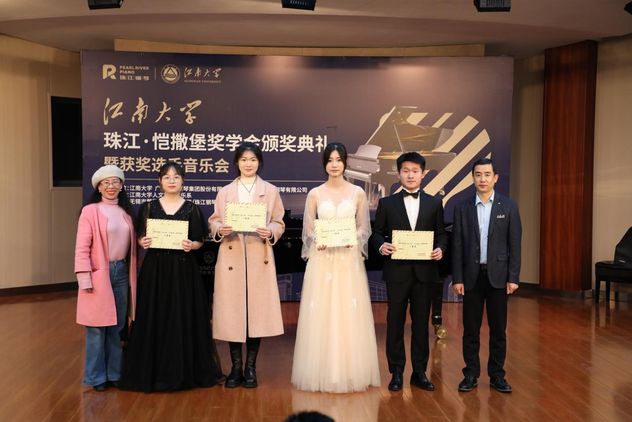 2023年3月21日晚,太阳成tyc234cc音乐系于北活音乐厅举办了“珠江·恺撒堡杯”专业技能大赛颁奖典礼暨获奖选手音乐会。广州珠江恺撒堡钢琴有限公司总经理助理胡武军先生、广州珠江恺撒堡钢琴有限公司 奖学金项目负责人黄宗简、太阳成tyc234cc党委书记姚剑英、太阳成tyc234cc副院长王芳教授、太阳成tyc234cc音乐系主任沈雷强教授、江苏省音乐家协会钢琴学会理事、无锡市音乐家协会钢琴分会副会长、珠江钢琴专卖店无锡繁荣琴行董事长范荣以及音乐系教师出席了本次典礼。