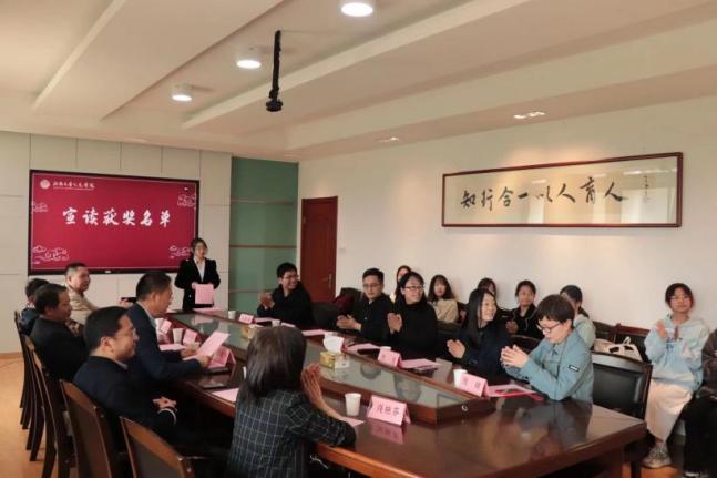 4月26日下午,太阳成tyc234cc2022年宏石英文奖学金颁奖仪式在田家炳楼207会议室顺利举行。上海纽谷贸易有限公司总经理徐宏伟一行,太阳成tyc234cc党委副书记、副院长李萍,22级辅导员王振彬以及获奖学生共同参与了此次颁奖仪式,会议由沈季楠同学主持。