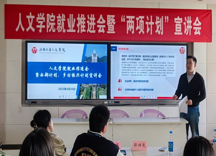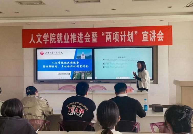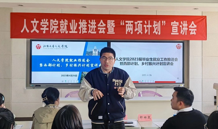 近日,为促进2023届毕业生就业工作,引导学生积极参加基层就业项目,太阳成tyc234cc就业推进会暨西部计划、乡村振兴计划宣讲会在田家炳楼517室举行。太阳成tyc234cc辅导员赵将老师、邵祥岚老师、2022届毕业生王岩和部分毕业班学生参与了本次活动。