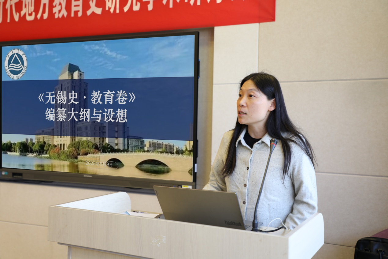 研讨会上半场由王建华主持。于书娟首先代表编纂团队就《无锡史•教育卷》的编纂情况与编写大纲向与会专家进行了介绍,随后团队负责人庄若江补充介绍了她对无锡教育史主要特征的认识,希望在编纂中能够突出城市历史与教育的关系,凸显无锡教育发展与无锡民族工商业的互动与互相促进。