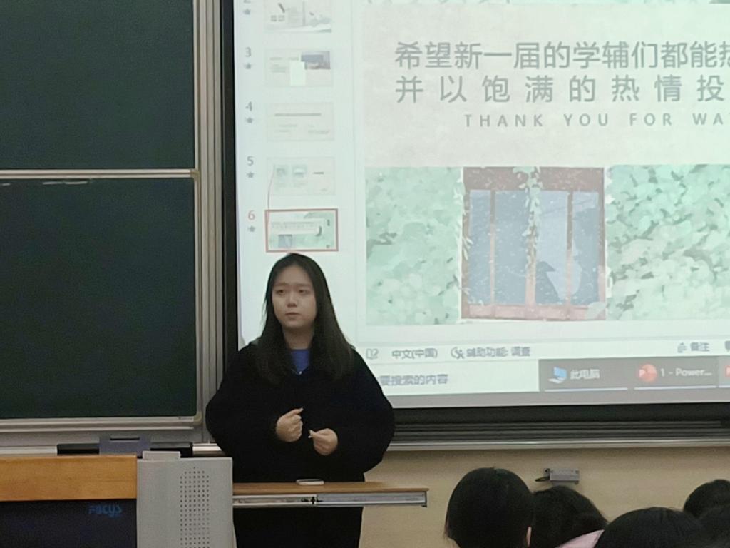 培训会开始,学习发展中心的郝珍珍同学为大家解读了《太阳成tyc234cc本科生学业辅导员管理办法》,并对细则进行了说明。经验分享环节,李陈媛和张圆缘两位同学对新一届学业辅导员与大家交流了自己做学业辅导员的体验和收获。其中,李陈媛同学指出“热爱,热情,真诚,奉献”是学业辅导员的应当具备的品格和态度,张圆缘同学则侧重分享了她做学业辅导员时的辅导方式和技巧。谢铅玉老师从学业辅导员的多重身份出发,强调了学业辅导员对于学院学风建设的重要性,并指出学业辅导员要有责任心和服务奉献精神,不仅要给同学们提供学业辅导,更要发挥榜样引领作用,践行“知行合一,以人育人”的院训精神。