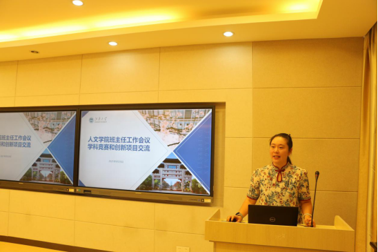 会上,赵丽敏老师首先通报了学校近期关于学生返校的工作部署以及返校后常态化的工作要求。刘昕旎老师就学科竞赛和创新训练项目与班主任老师进行交流,她从指导要求、激励政策、重大赛事特点及创新创业成果四个方面进行了详细介绍,希望班主任老师在班级营造积极参加学科竞赛及创新创业良好氛围。随后,邵祥岚老师通报了学院近期综合测评、评奖评优及学生资助等相关工作的工作进展,明确了班主任在以上工作中的详细内容和具体要求。赵丽敏老师汇报了社会实践工作的现有成果、工作经验与特色,希望老师们能够积极带动班级同学参加各级各类社会实践,在实践中增长才干、实现价值。张慧老师通报了学院心理健康教育工作的现状以及新学期工作内容,希望班主任老师继续做好对学生的关心关注、用好学生骨干队伍、加强与辅导员的沟通联系,共同做好学生的心理健康教育工作。