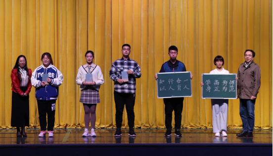 学院领导为学生代表赠书《人生十论》,授师范生小黑板