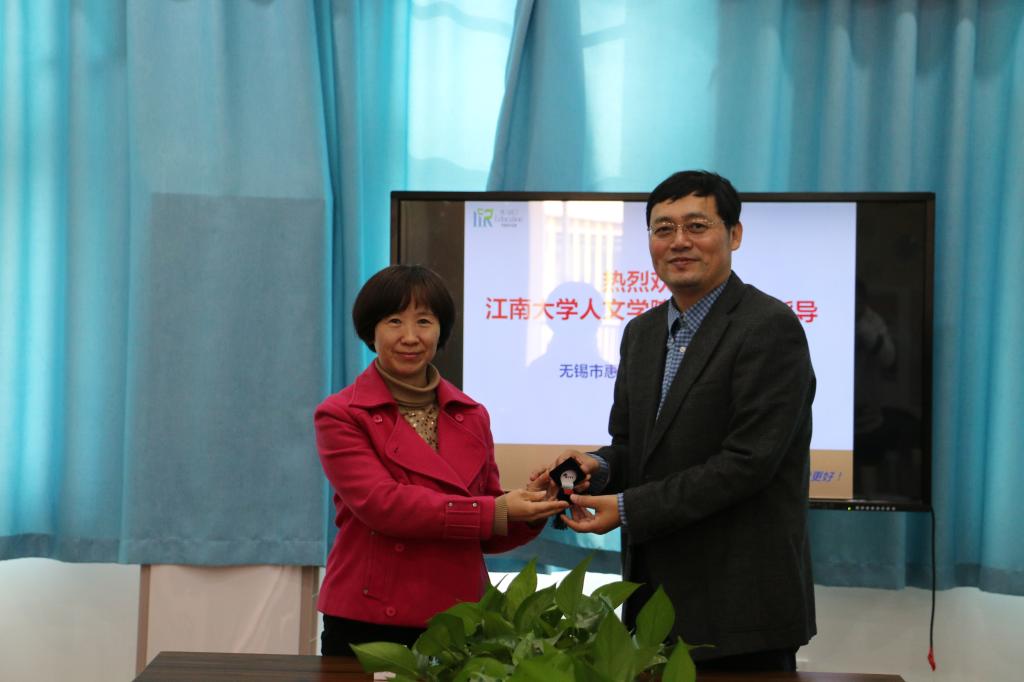 姚剑英代表学院向韩荣寨校友赠送“天下江南人”纪念章