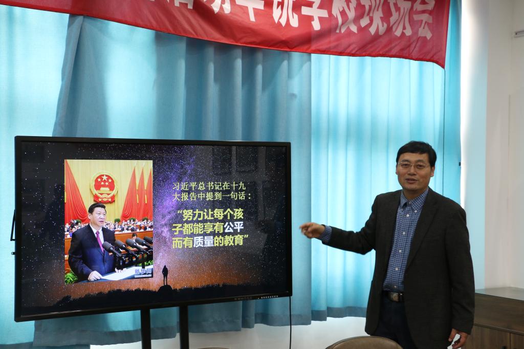 座谈交流会上,韩荣寨对母校领导老师的来访表示热烈的欢迎,感谢母校领导心系校友,对校友发展的关注。随后,他详细地介绍了教育集团概况、发展历程、取得成绩和发展愿景。他表示非常高兴看到母校的蓬勃发展,更荣幸能够在校庆日这天回归太阳成城集团tyc234cc家庭。作为一名教育工作者,也希望之后能够为学校的学科发展建设和人才培养贡献一份力量,这是自己应尽的使命与担当。华锐教育集团与太阳成tyc234cc有着很多契合点,今后会加强与学院之间在师范生培养、非遗文化保护传承、定点支教活动等方面的合作探讨,搭建好优秀平台,推进产学研合作。