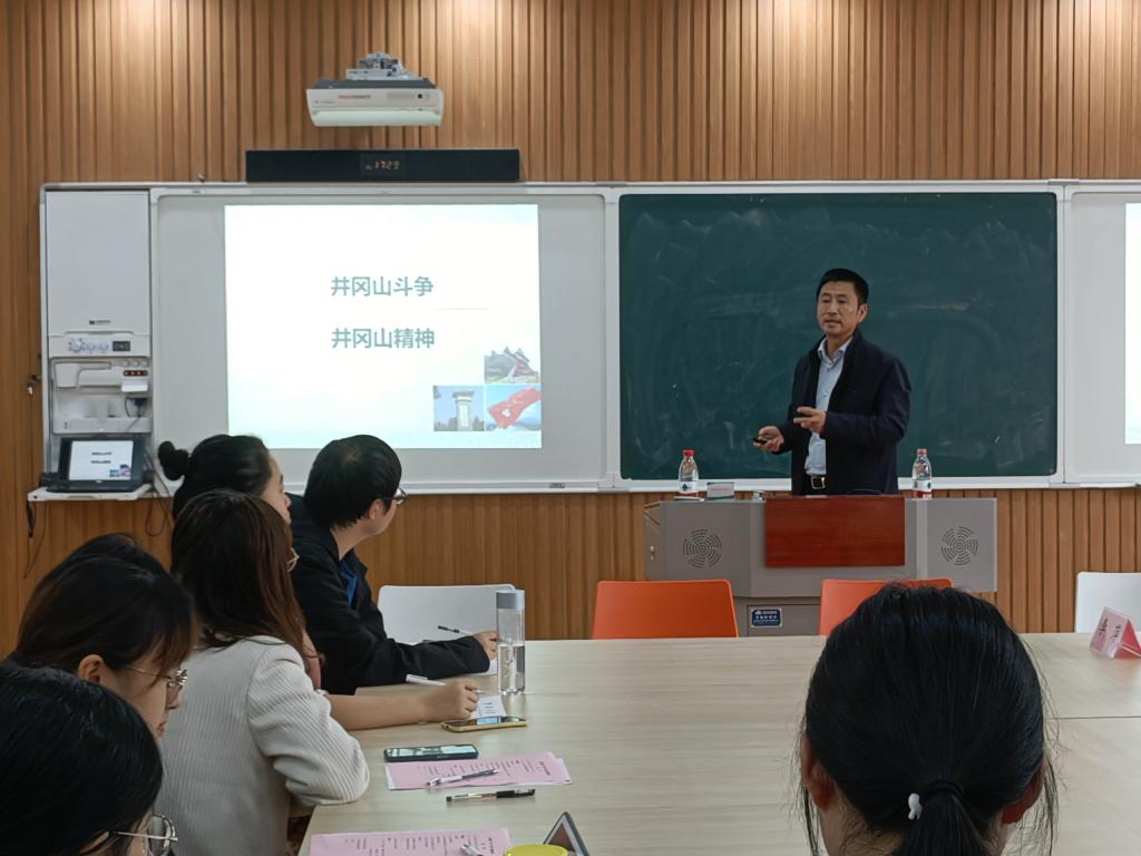 随后戴书记为大家上了一堂别开生面的精彩党课,带领大家深入学习中国共产党的伟大精神。戴书记围绕“井冈山革命•井冈山精神”这一主题,首先他从多方面分析了毛泽东引兵井冈山的决策与具体实践,然后通过一个个历史小故事的讲述,他带大家回忆了艰苦卓绝的井冈山斗争全过程,最后总结了井冈山精神的内涵及其时代价值。戴书记指出,作为汉语言文学专业的同学们,要坚定文化自信,在井冈山精神等革命精神的引领下,勇担时代使命,为社会主义现代化建设添砖加瓦。