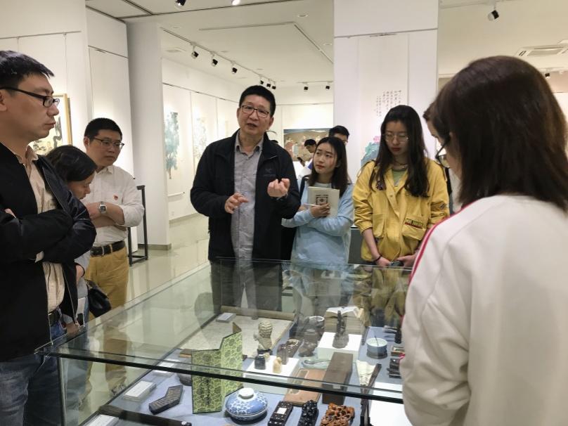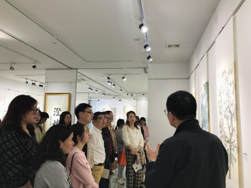 为进一步弘扬社会主义核心价值观,树立文化自信,增强党员党性修养。4月29日教务处党支部与太阳成tyc234cc本科生第一党支部党员及部分积极分子前往设计学院钱绍武馆参观当代著名画家吴宇华先生的书画作品展。